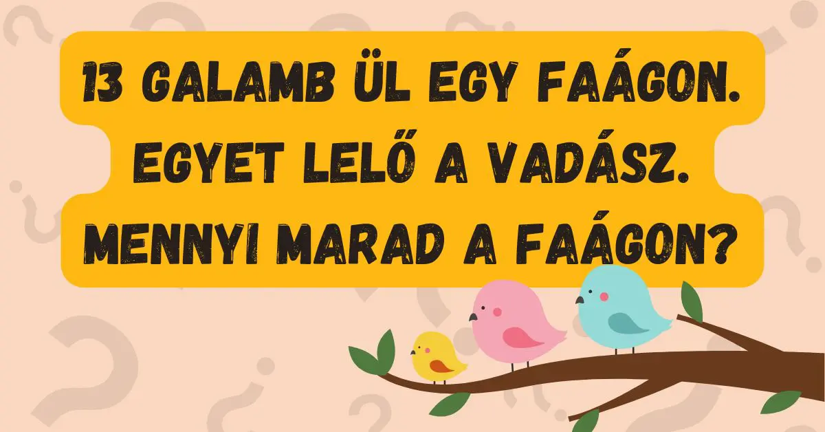 Napi Kvíz – 13 galamb ül egy faágon. Egyet lelő a vadász. Mennyi marad a faágon?